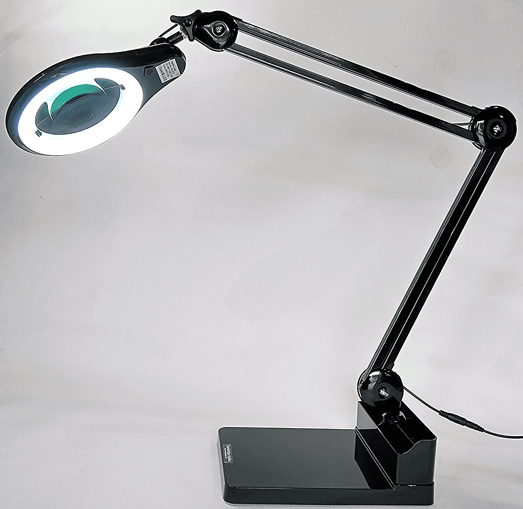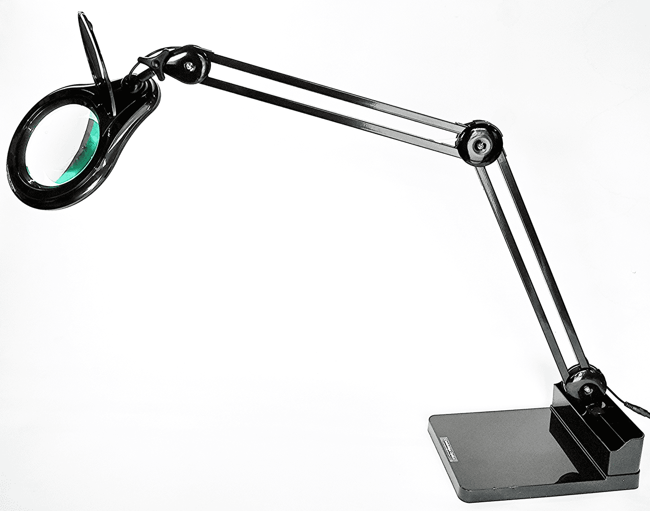2.25X Long Reach, Black, Articulated Arm, Desk Stand Magnifier, Wide Lens, Dimmable Daylight LED