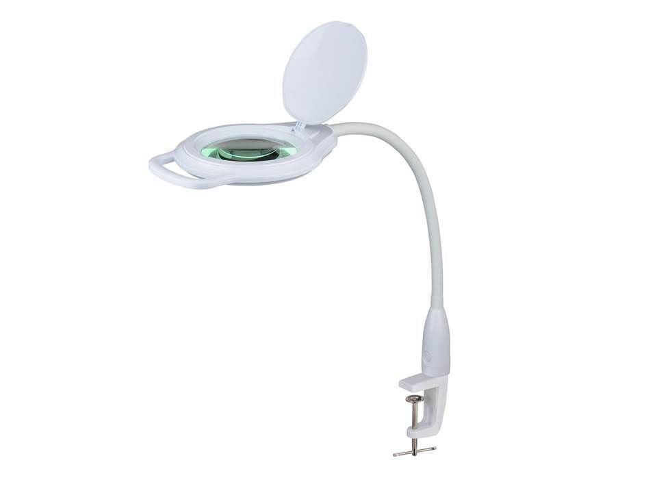 2.25X Long Reach, Gooseneck G-Clamp Daylight LED Magnifier, Wide Lens, Dimmable