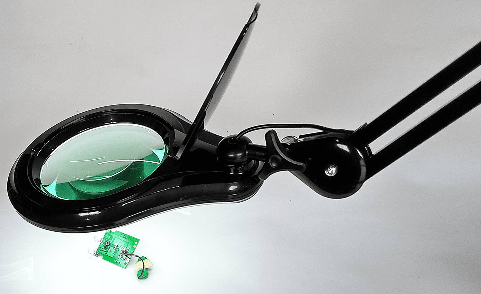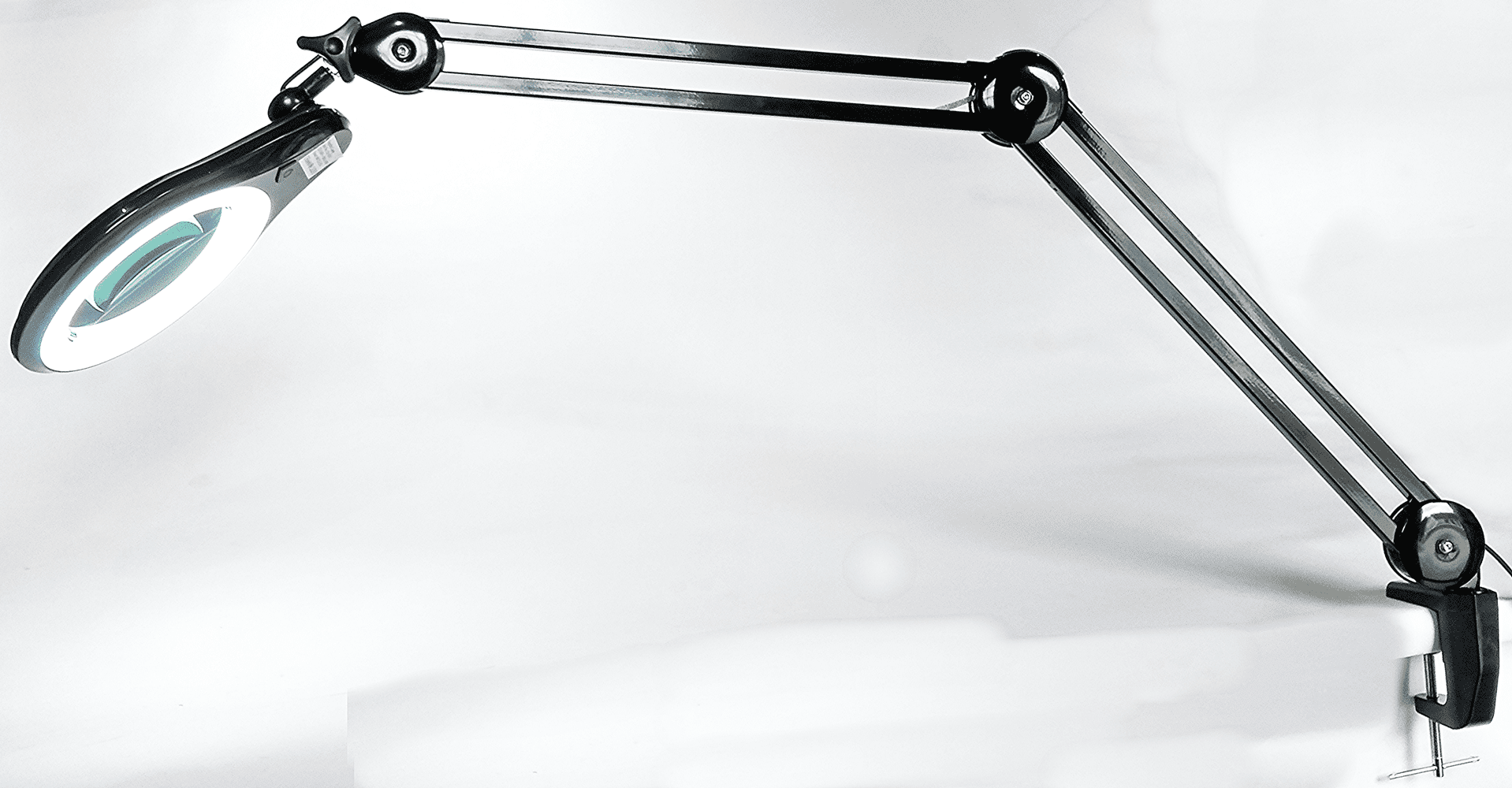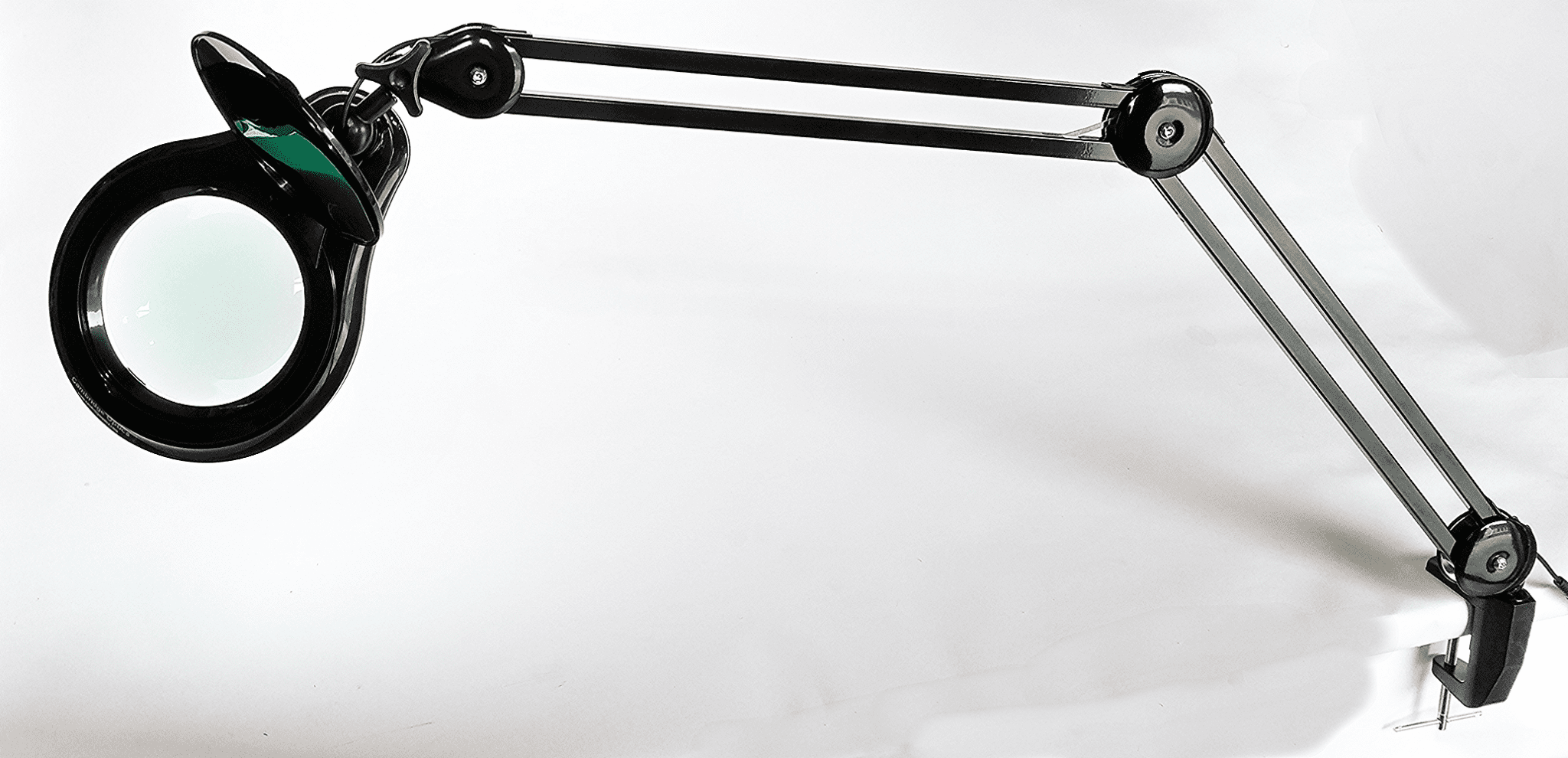 3X Long Reach, Black, Articulated Arm, G-Clamp Magnifier, Wide Lens, Dimmable Daylight LED